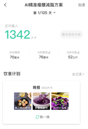 新增AI精准瘦腰减脂方案。会不竭优化弥补正在后续的饮食方案中,